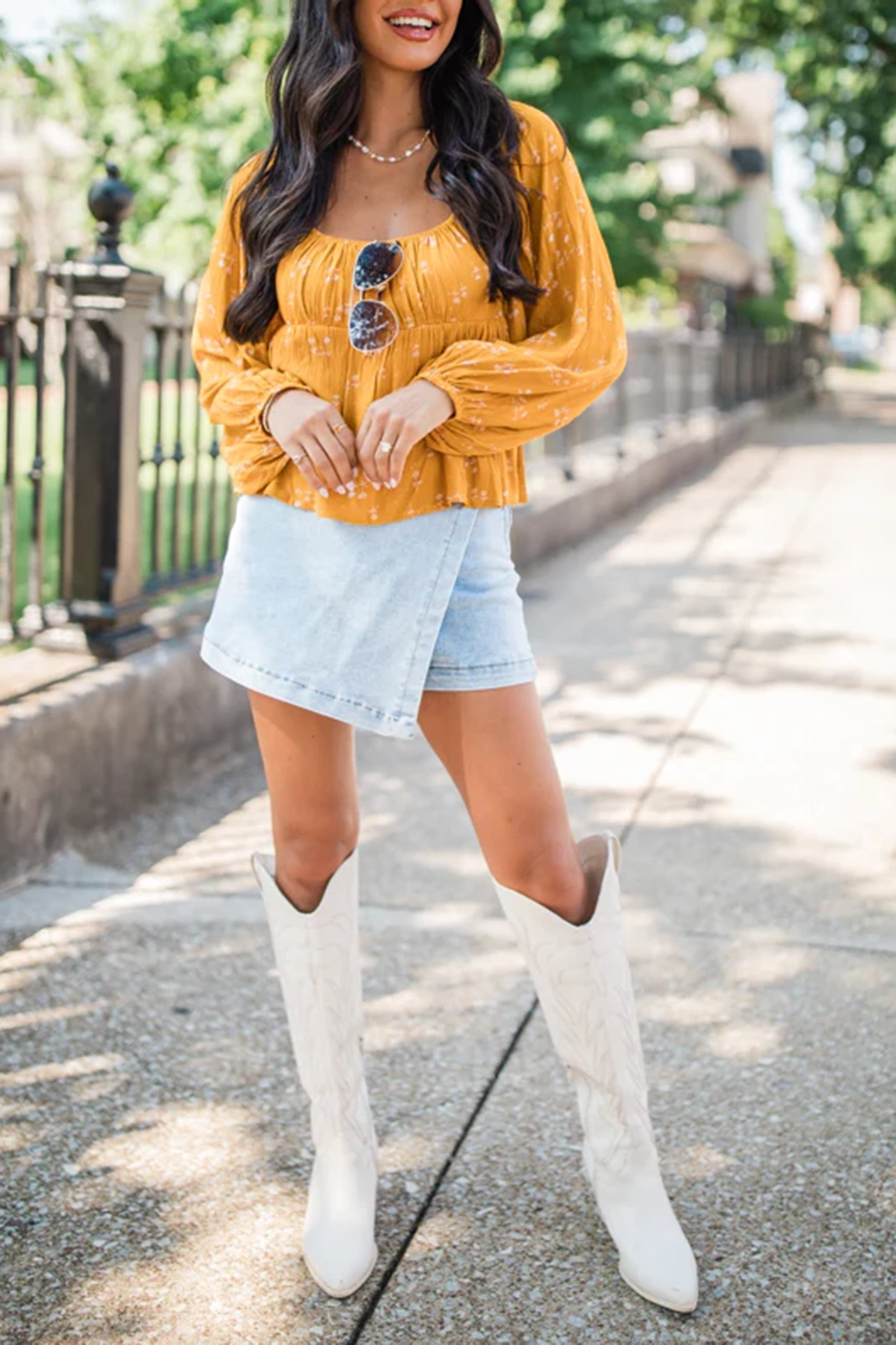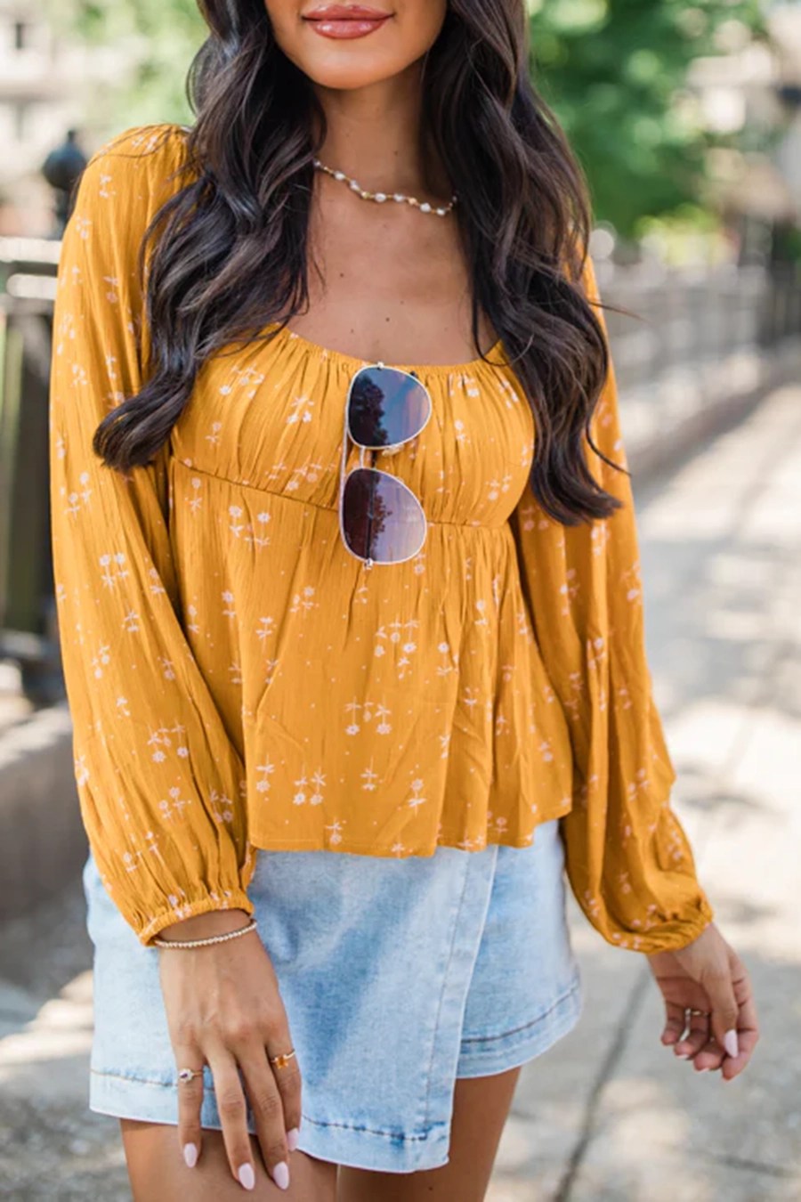 Mustard Floral Babydoll Blouse