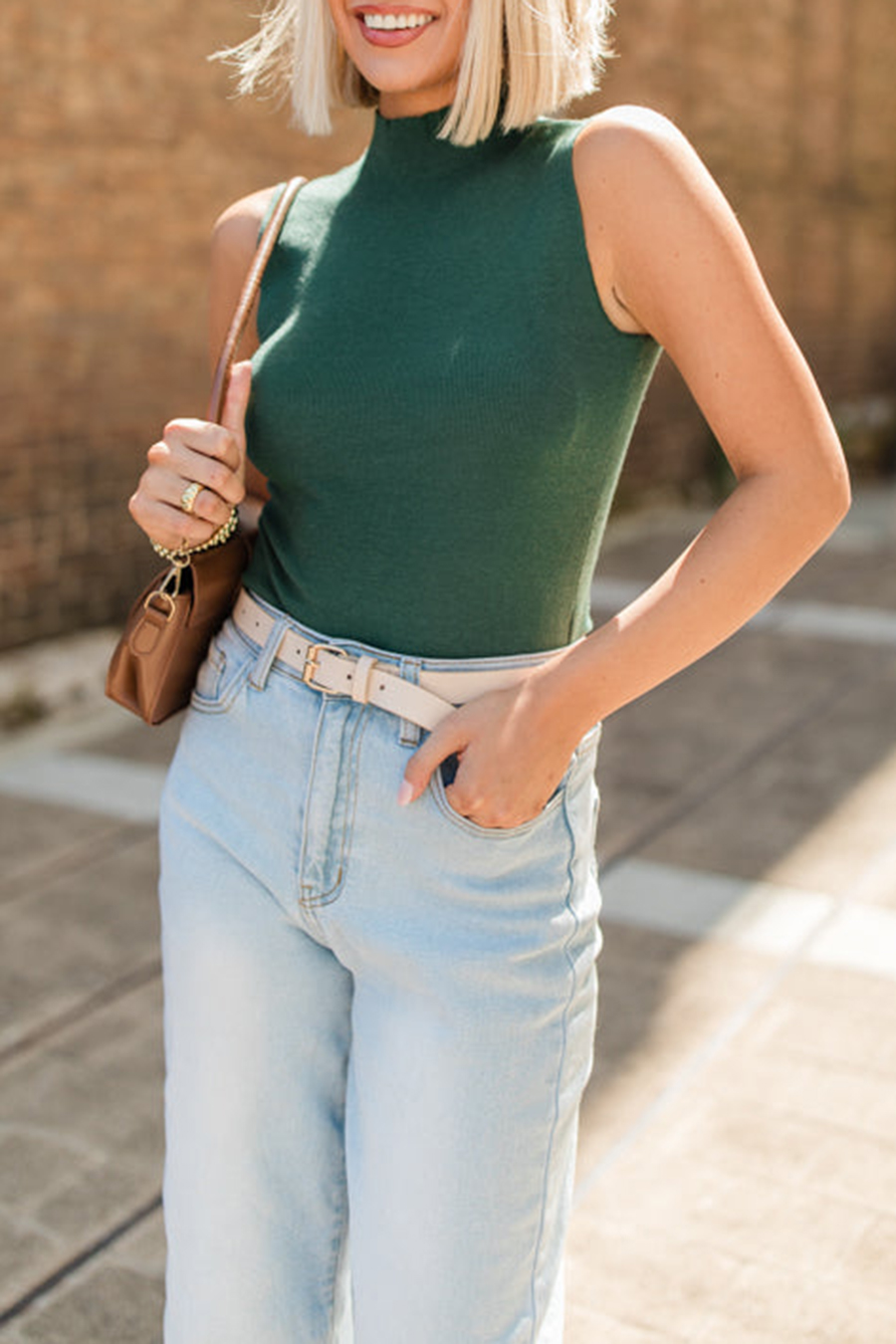 Sleeveless Mock Neck Knit Bodysuit 91417